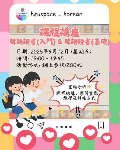 歡迎所有有興趣學習韓語/對韓語有基本知識的人士參與是次講座,詳細了解及選讀自身合適的課程。