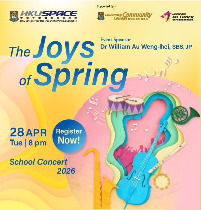 Spring is here once again, and how better to celebrate this joyful season than at our annual “Joys of Spring” School Concert. As always, the concert will showcase the extraordinary breadth of talent among our students, alumni, and dedicated teachers from HKU SPACE, highlighting the growth that stems from our commitment to lifelong learning.