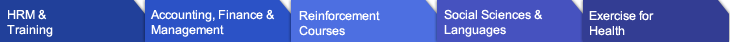 The School offers several reinforcement courses in various areas to help students prepare for upcoming examinations. These include preparatory courses for accounting, financial risk management, private pilot and helicopter pilot licence, and foreign language examinations.
