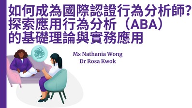 本講座將深入淺出地為您解構BCBA的專業發展藍圖,細述心理學理論基礎、實務培訓重點,以至認證考試準備等重要環節。無論您是對心理健康充滿熱誠的新鮮人,還是正尋求突破的在職人士,這都是一個難得的機會,讓您將助人熱忱昇華為專業實力,在心理健康領域開創屬於自己的精彩人生。