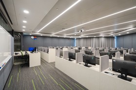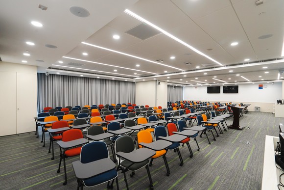 為配合學院發展電子學習的策略,新九西校舍的課室裝置了最新科技設備,可以同時支援即場和遙距教學;零回音干擾的課室非常適合進行討論及問答環節;互動式電子白板使教學更有效率;觸控式介面調控音頻、視訊、照明及訊號傳輸,可支援無線教學示範。