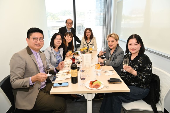 儀式後,嘉賓共晋午膳。席間更邀請了學院品酒課程的兼職導師、獲授予「香檳榮譽騎士勳章」的潘寶賢介紹品嚐紅、白酒的技巧及搭配不同食物的秘訣;而數奪香港咖啡拉花大賽冠軍的兼職咖啡導師Keith Tse則表演精品咖啡拉花,並沖煮色香味俱全的精品咖啡予嘉賓品嚐,可見學院品酒及咖啡課程的專業師資及卓越的教學質素。
