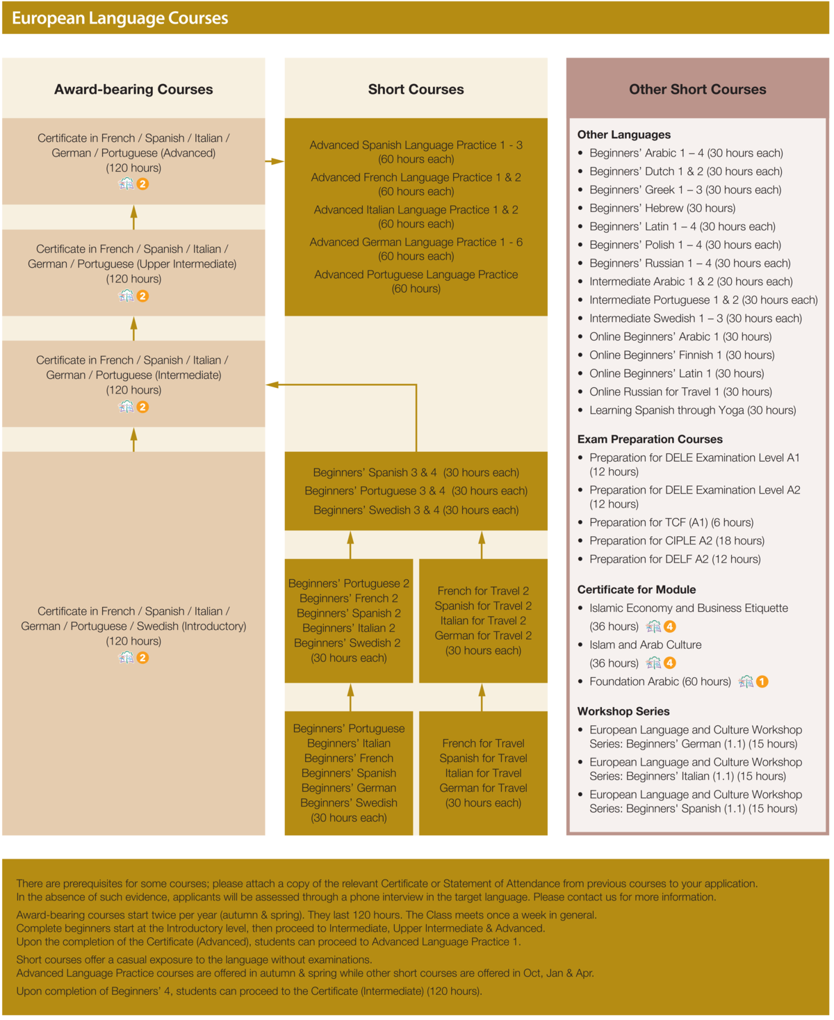 - 在政府指定的測試組織/代理機構舉辦的語文基準考試中取得要求成績(考試日期必須於課程開始後),西班牙語的基準考試為 DELE (Diploma Español Lengua Extranjera or Diplomas of Spanish as Foreign Language)