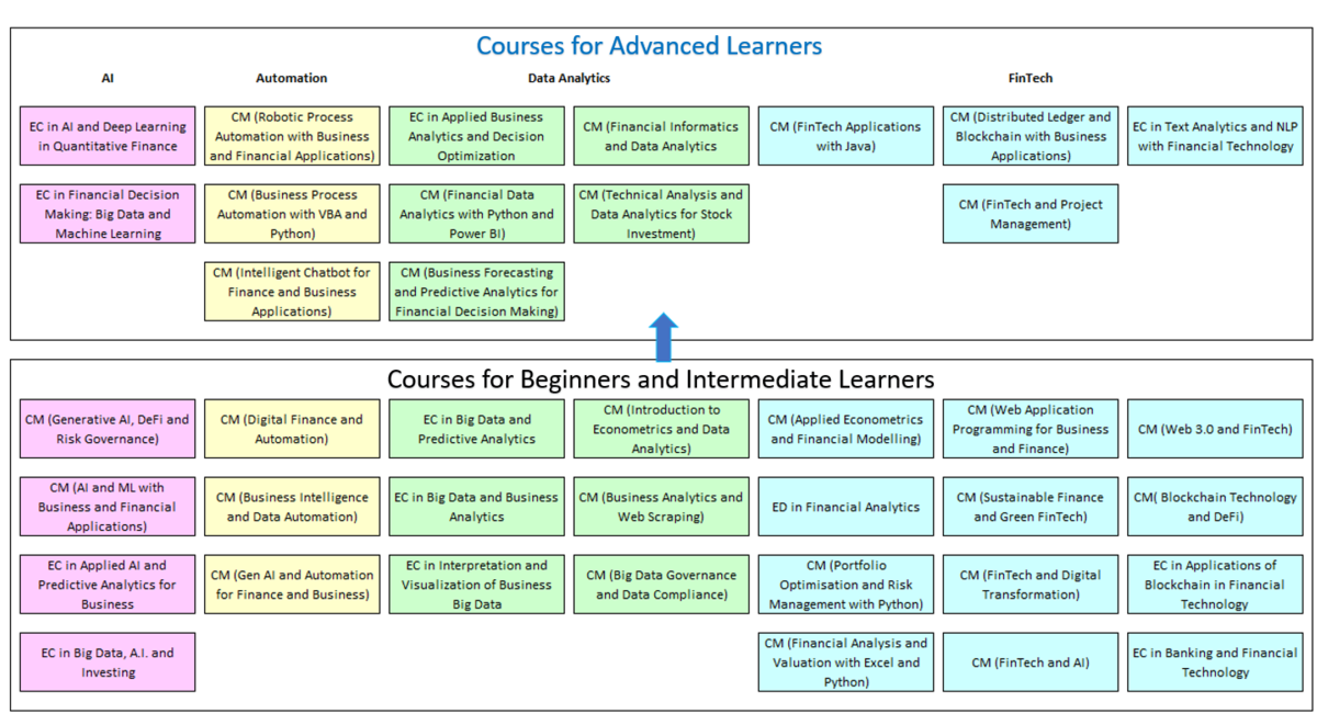 - Executive Certificate in Big Data and Business Analytics Executive Certificate in Big Data and Predictive Analytics Executive Certificate in Applied AI and Predictive Analytics for Business Executive Certificate in Interpretation and Visualization of Business Big Data Executive Diploma in Financial Analytics Executive Certificate in Applications of Blockchain in Financial Technology Executive Certificate in Applied Financial Risk Management Executive Certificate in Applied Business Analytics and Decision Optimization Postgraduate Diploma in Investment Management and Financial Intelligence Postgraduate Diploma in Investment Management and Financial Intelligence