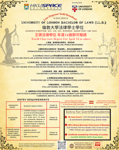 [LAW Information Seminar] Studying the world-class University of London Undergraduate Programmes in Law with HKU SPACE (Cantonese)