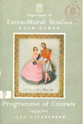For the 1959 Prospectus, the portrait of Emperor Taizong, on the previous year’s cover, was replaced by a picture of Queen Victoria Prince Albert dancing the polka. The original painting was chromolithographed by John Brandard in the 1840s, and has been in the National Portrait Gallery, London, UK since 1902.