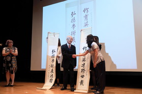 The concert opened with vocal teacher Ms Marisa Kwok singing ‘Bizet’s Je dis que rien ne m'épouvante’, a beautiful yet challenging aria from the French Opera ‘Carmen’ accompanied by Ms Grace Yu on the piano. This was followed by a lovely Xinjiang folksong《帕米爾, 我的家鄉多麼美》, prior to something rather special for the occasion. The sublime calligraphy of Mr Wong Chai-lok, one of the School’s Honorary Fellows and a teacher at HKU SPACE, was displayed on screen to the accompaniment of live music by CMus, led by teacher Dr Yeung Wai-kit, CMus perfectly demonstrated how music met calligraphy.