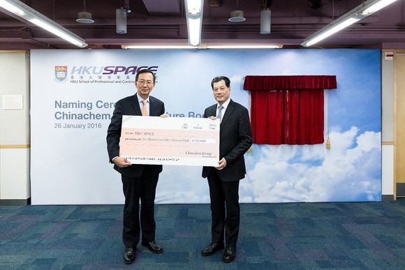 HKU SPACE held the naming ceremony for the “Chinachem Group Lecture Room” on 26 January 2016 in appreciation of the generous donation of HK$250,000 from the Group to aid full-time students in financial needs.