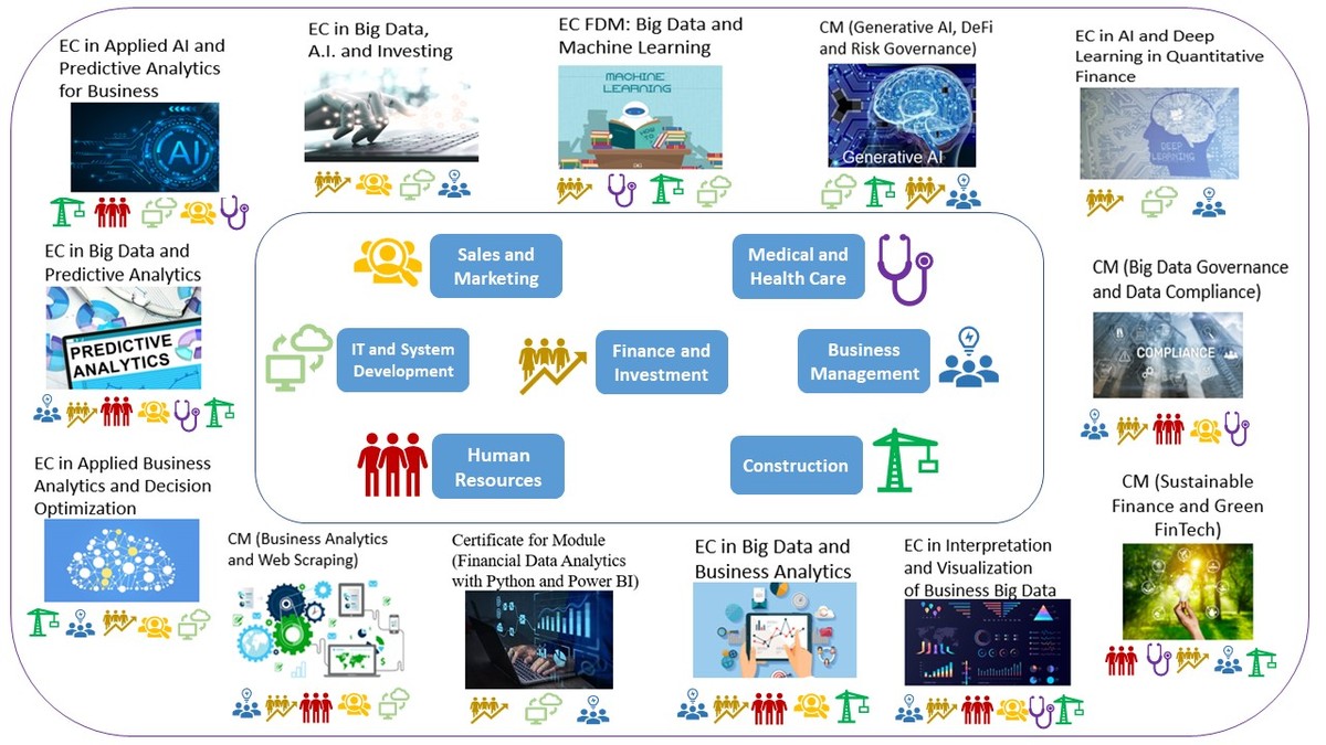 - Executive Certificate in Big Data and Business Analytics Executive Certificate in Big Data and Predictive Analytics Executive Certificate in Applied AI and Predictive Analytics for Business Executive Certificate in Interpretation and Visualization of Business Big Data Executive Diploma in Financial Analytics Executive Certificate in Applications of Blockchain in Financial Technology Executive Certificate in Applied Financial Risk Management Executive Certificate in Applied Business Analytics and Decision Optimization Postgraduate Diploma in Investment Management and Financial Intelligence Postgraduate Diploma in Investment Management and Financial Intelligence