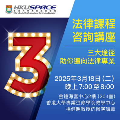 - Facebook 直播 @ HKU SPACE LAW Facebook Page: https://www.facebook.com/hkuspacelaw/
